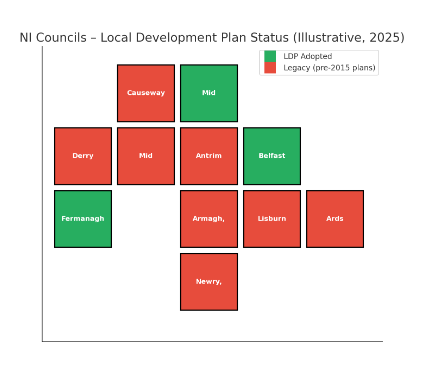 - Some councils (like Belfast and Armagh, Banbridge & Craigavon) have draft LDPs that have been examined but not adopted, pending DfI sign-off.