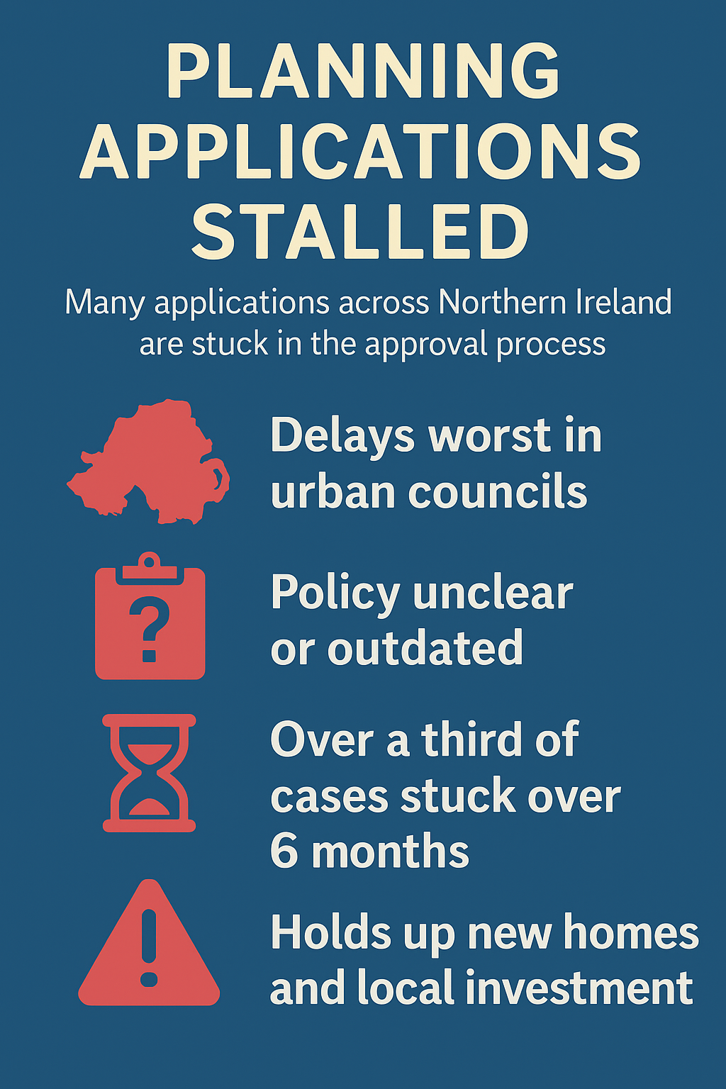 🧩 Implication: Northern Ireland’s key urban areas — those best placed for sustainable growth — are experiencing planning fatigue, undermining regional balance and housing delivery.